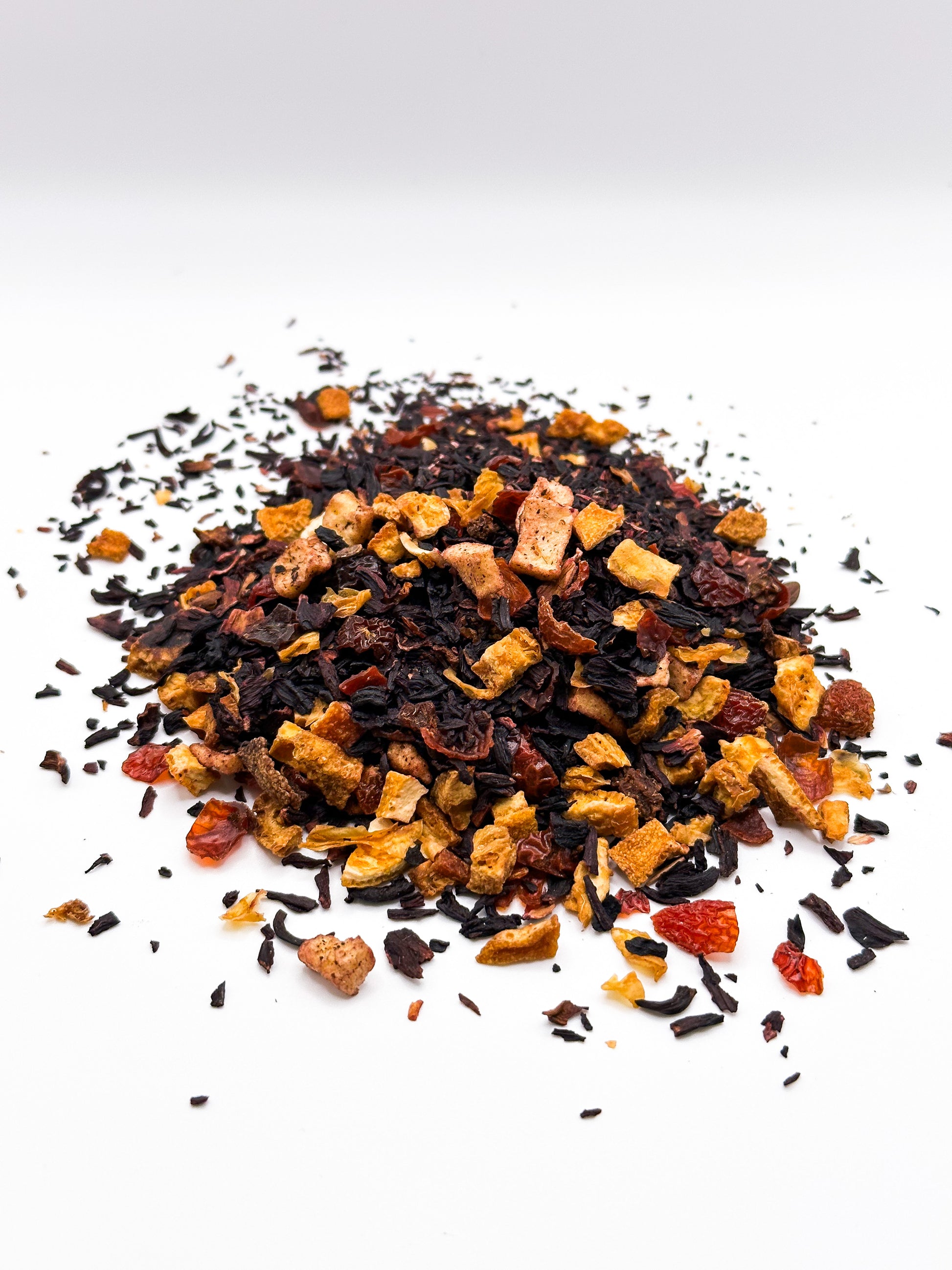 A luscious, antioxidant-rich blend crafted to refresh and invigorate. This vibrant tea features the perfect harmony of hibiscus, berries, and natural ingredients designed to support vitality and overall wellness. Whether sipped hot or chilled, this blend uplifts your spirit and energizes your body with every sip.